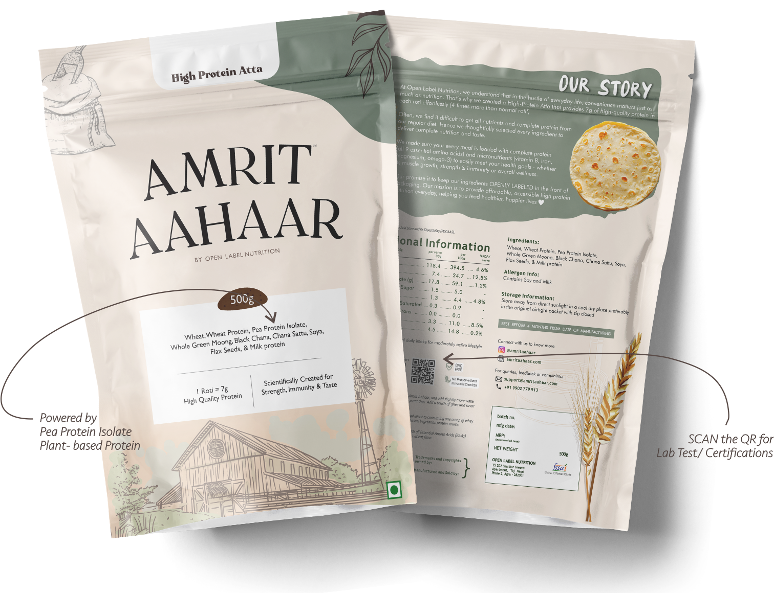 • Each roti made with Amrit Aahaar delivers around 7 grams of high-quality, complete protein.